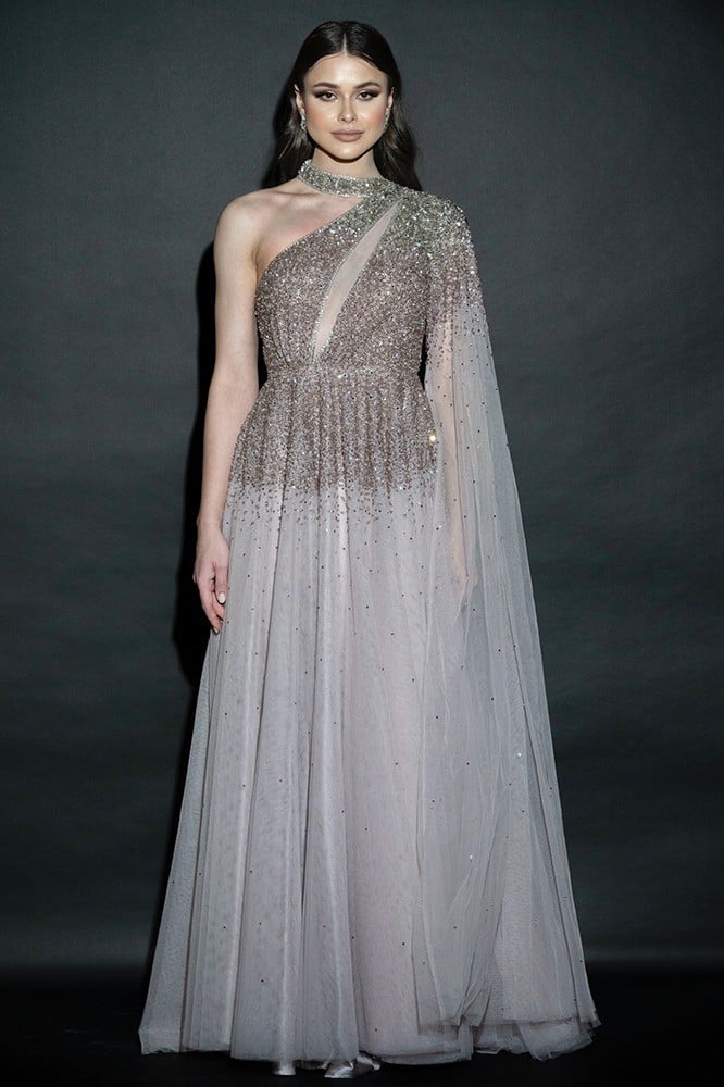 فستان سهرة تول شك بالكامل كتف واحد مع حمالة رقبة