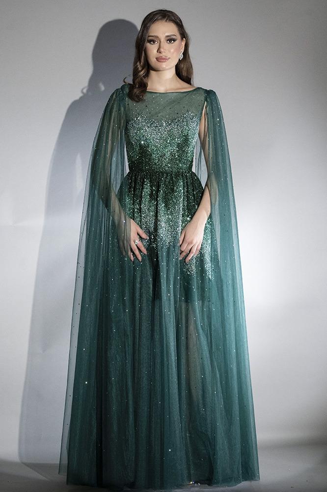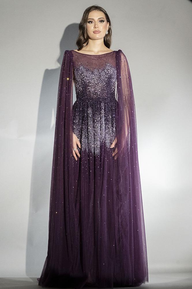 فستان سهره تول شك كامل بالكريستال مع شيفون منسدل من عند الاكتاف وبطانه داخليه قصيره و حزام جلد نحيف
