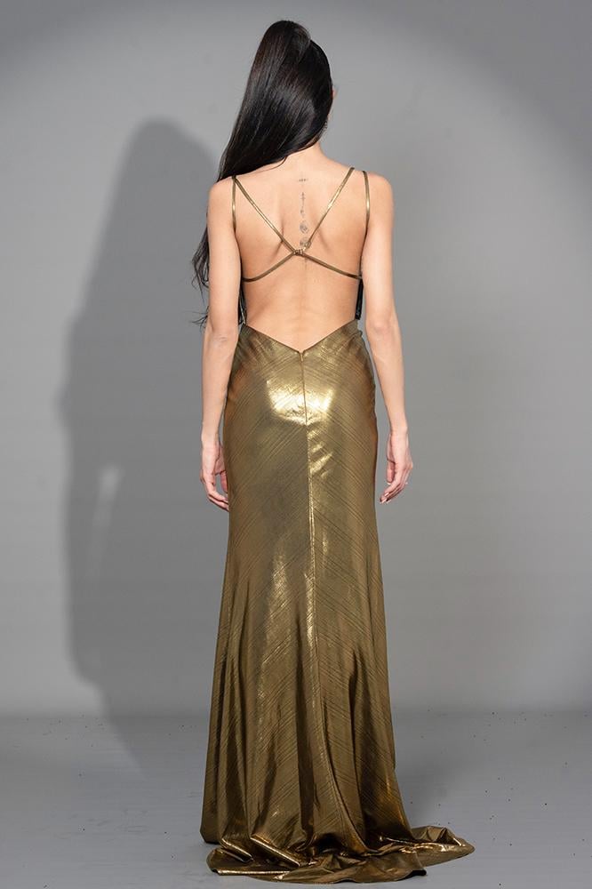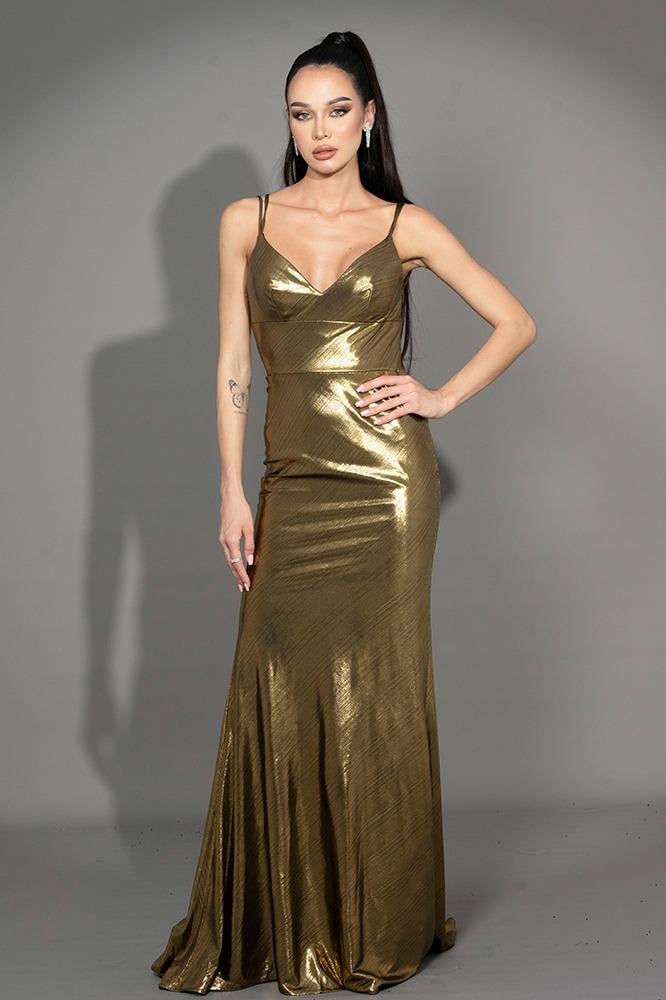 فستان سهره لاميه بحمالات مفتوح من عند الظهر
