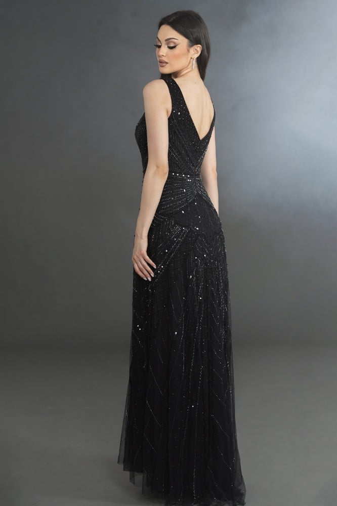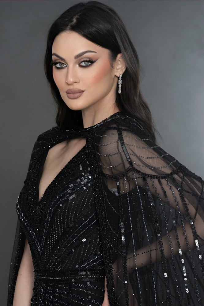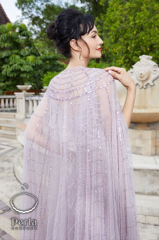 فستان سهره كات شك كامل كلوش مع كيب طويل منفصل و حزام جلد مزين بالكريستال