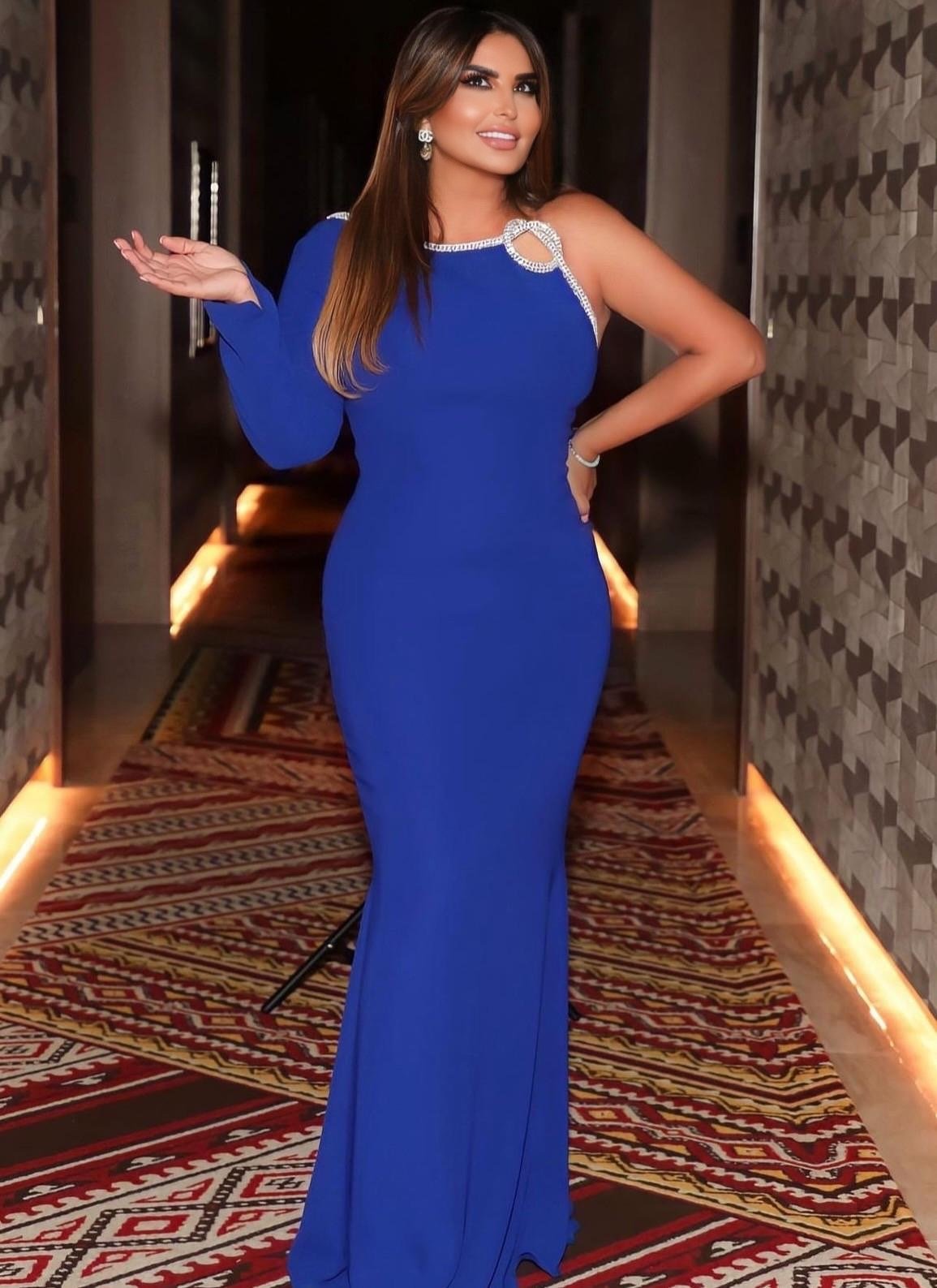 في هذه الإطلالة اللافتة، تتألق الفنانة شذى حسون بفستان كريب أنيق بلون أزرق ملكي يُبرز جمالها بكل أنوثة وثقة. التصميم يتميز بقصّة ضيّقة تنساب على الجسم بانسيابية، لتُظهر القوام برقيّ دون مبالغة، مما يخلق توازناً مثالياً بين الفخامة والنعومة. ما يميز الفستان حقًا هو اختيار القماش الكريب المعروف بمرونته وانسيابيته، مما أضفى لمسة راقية وعصرية على الإطلالة، مع لمسات خفيفة في التصميم تبرز الذوق الرفيع. الفستان يأتي بكتف واحد طويل وآخر مكشوف، تتخلله لمسة من البريق عند منطقة الصدر على شكل حلقة ماسية براقة تُضفي لمسة درامية فاخرة دون أن تسرق البساطة المتقنة في المظهر العام.